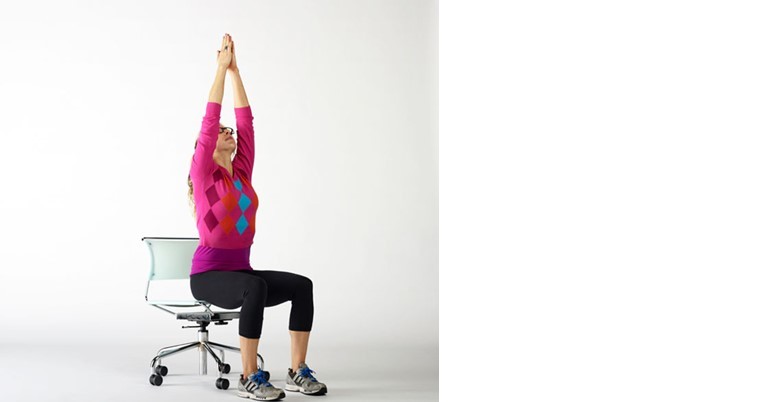 - Bring your palms together and stretch as higher as you can and extend more and more towards the ceiling.
