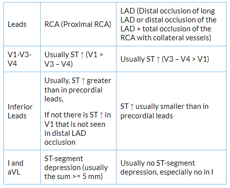Concomitant ST-segment elevation in the precordial leads (especially V1-V3-V4) and inferior leads (II, III and aVF).