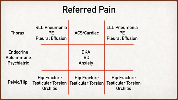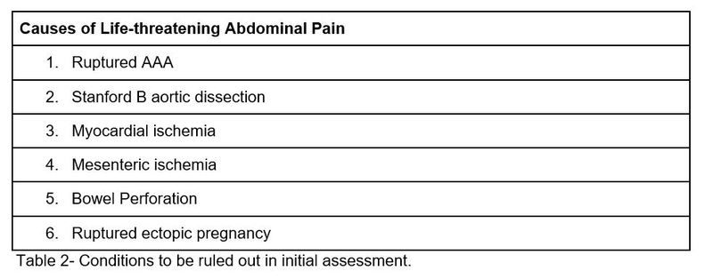 Pain abdomen has various etiologies, which can be understood based on the exact localization (Figure 2), onset (acute versus gradual), associated symptoms and signs ( radiation, quality, relieving and aggravating factors- detailed in Table 1) and Life-threatening causes (Table 2).