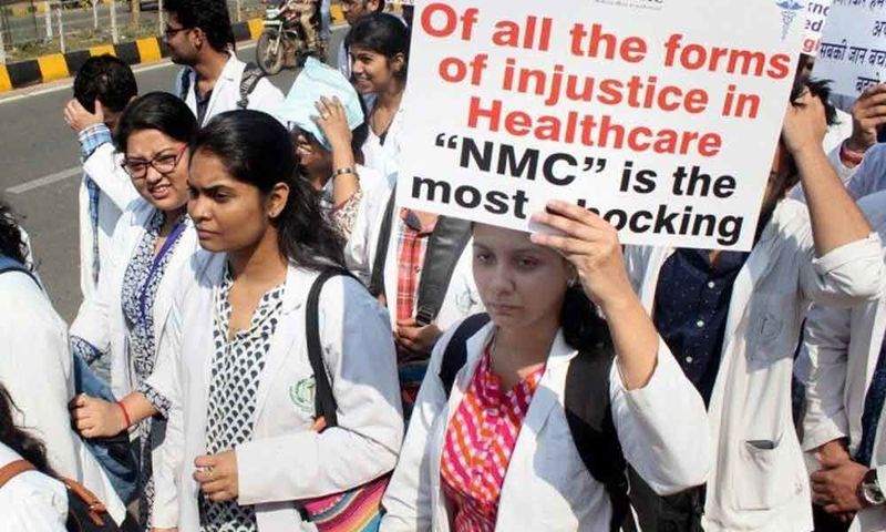 Doctors and students from various hospitals and colleges protested in New Delhi on 29th July alleging that the National Medical Commission (NMC) Bill will only give a boost to quacks.